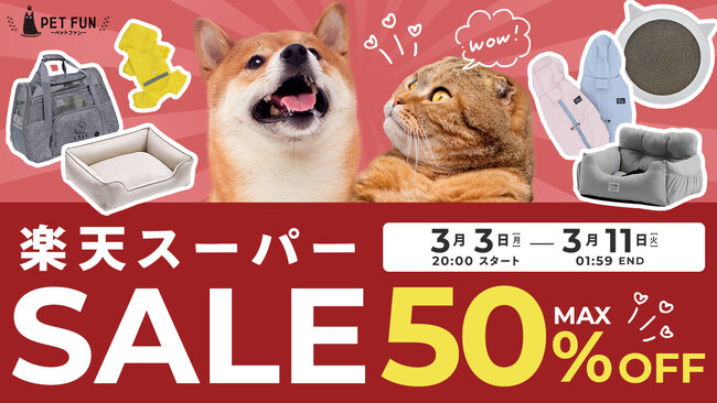 Fun Standard株式会社(本社:福岡県大野城市、代表取締役:大屋良介)が展開するペット用品関連を販売する「PETFUN(ペットファン)」より、犬、猫好きの皆様に向けて、楽天市場にてスーパーSALE特別企画を開催いたします。