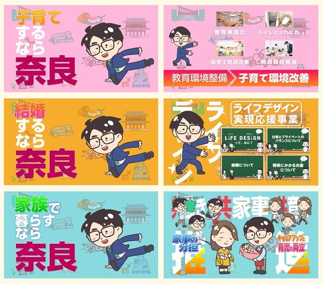 この動画を活用して、「子育て」、「結婚」、「家族」といった観点から、奈良県が若者にとって暮らしやすい県であることをSNSやイベント、サイネージ等を通じて県内外に広くアピールしていきます。