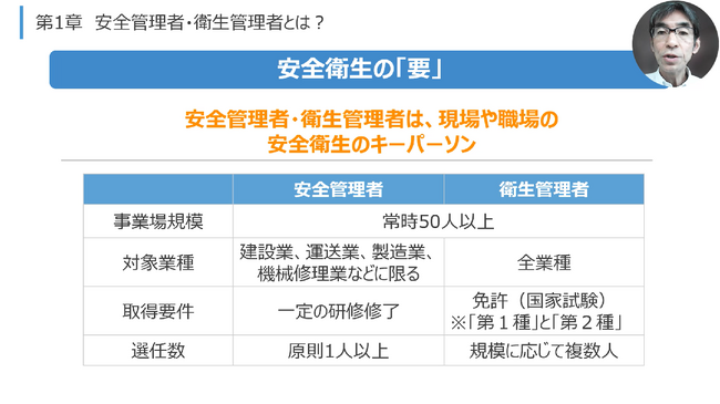 職場の安全衛生管理体制の全体像、衛生管理のキーマンである衛生管理者や産業医の選任、衛生委員会の設置義務、それぞれの職務内容について解説します。