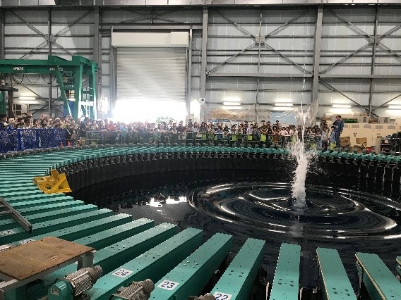 世界最大級の400m!台車に乗って船が作る波の様子を見ることが出来ます。