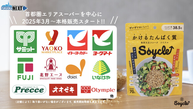 株式会社上向き(本社:福岡県福岡市、代表取締役:白坂 大作)は、当社製品である「Soycle(ソイクル)発芽大豆フレーク」(以下「ソイクル」)を、2025年3月より首都圏エリアのスーパーを中心に、順次販売を開始いたします。これにより、これまで通販でのみご購入いただいていたお客様にも、より身近な店舗でお求めいただけるようになりました。