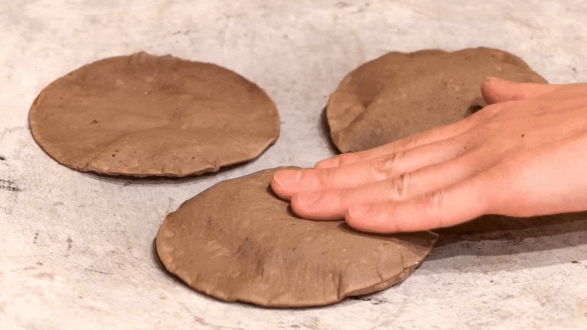 トウモロコシを調理・製粉し、焼き上げたトウモロコシ由来の薄い丸型の生地。