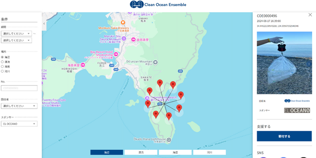 ※海洋ごみマップリンク:https://map.cleanoceanensemble.com/