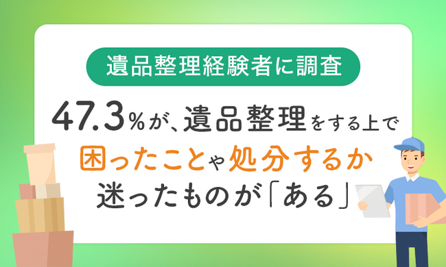 【遺品整理経験者に調査】47.3%が、遺品整理をする上で困ったことや処分するか迷ったものが「ある」