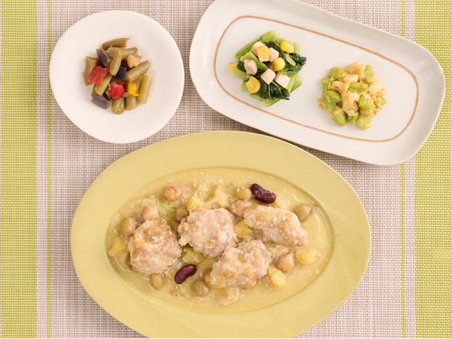 本商品は、鶏肉や豆類を使用することで、1食あたり24.2gのたんぱく質を実現。たんぱく質は、筋肉の維持やエネルギー代謝をサポートするだけでなく、朝に摂取することで満腹感が続き、午前中の集中力アップにもつながると言われています。また、ほんのり甘いさつまいもやシャキシャキ食感のキャベツを加えることで、野菜もたんぱく質も摂れる栄養バランス満点の一皿に仕上げました。麹スープで仕上げた優しい味わいが特徴で、食欲がないときにもおすすめです。