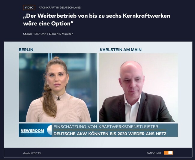 NUKEM CEO、Bild紙のインタビューでドイツの原子力復活の『現実的可能性』を指摘