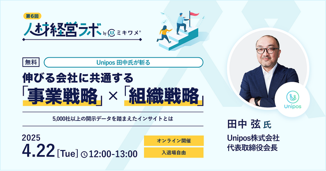ミキワメが4/22(火)にオンラインイベント「人材経営ラボ(Unipos 田中 弦会長ご登壇)」を開催