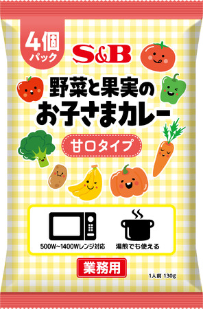 エスビー食品株式会社は、業務用電子レンジ対応の「野菜と果実のお子さまカレー4 個パック」を新発売します。