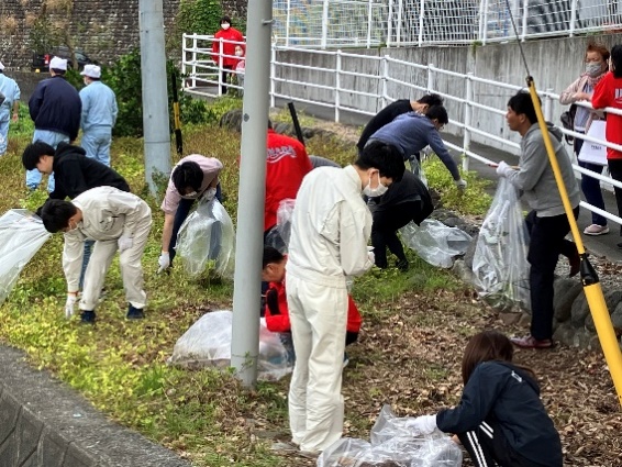 当日は、社員61名が参加し、約1時間30分かけて岸辺のごみ拾いや川沿いの除草などを実施しました。この清掃活動は2003年の1月から年に1回の頻度で実施しております。
