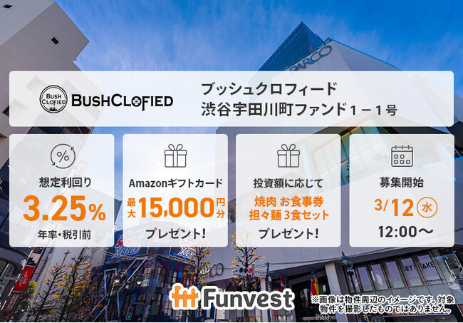 「未来をわかちあう投資」を提供する「Funvest(ファンベスト)」(以下、Funvest)は、「ブッシュクロフィード 渋谷宇田川町ファンド1-1号」(以下、本ファンド)の募集を3/12より開始します。