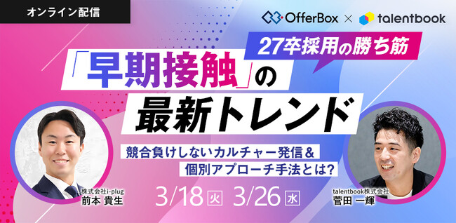 イベント名:27卒採用の勝ち筋 「早期接触」の最新トレンド 競合負けしないカルチャー発信&個別アプローチ手法とは?
