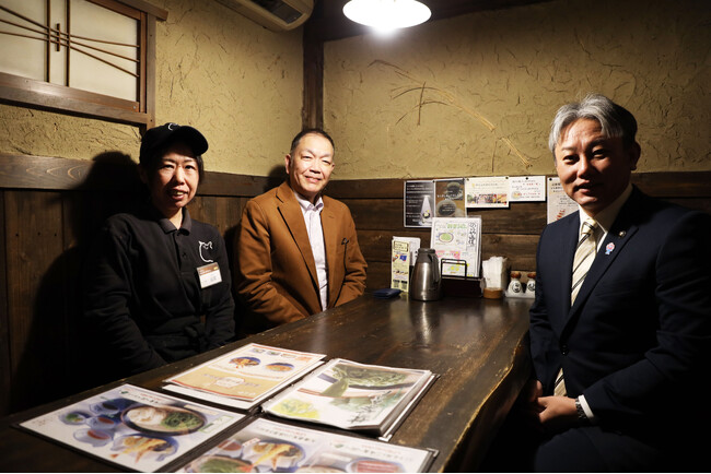 (写真左から)のらや羽曳野店店長 詫間絵美 、のらや代表取締役社長 宇田隆宏、羽曳野市長 山入端創