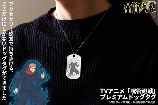 TVアニメ『呪術廻戦』第2期「懐玉・玉折」およびTVアニメ「呪術廻戦」のキャラクタービジュアルを使用した、アクセサリー感覚で持ち歩けるプレミアムドッグタグが登場