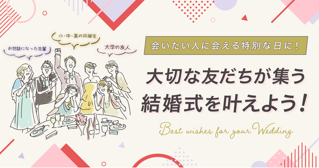 そこで新郎新婦とゲストの悩みに応えるため、友人招待のハードルを下げるために、多くの会場様にもご賛同いただきウェディングニュース限定で友人を招待するきっかけとなる特別プランを発信をしていきます。