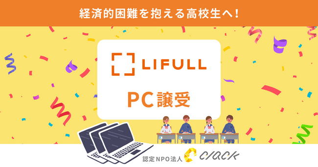認定NPO法人CLACK(以下:CLACK)は、株式会社LIFULL(代表取締役社長:伊東祐司、以下「LIFULL」)より、使用済みのPC20台をご寄贈いただきました。