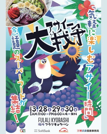 FoodFes株式会社(代表取締役:稲垣一馬)は、2025年3月28日(金),29日(土),30日(日)の3日間、大阪・京橋”FULALIKYOBASHI”にて開催するアサイーボウルを中心とした食のイベント「アサイー大戦争」の出店店舗とゲストをご紹介します!