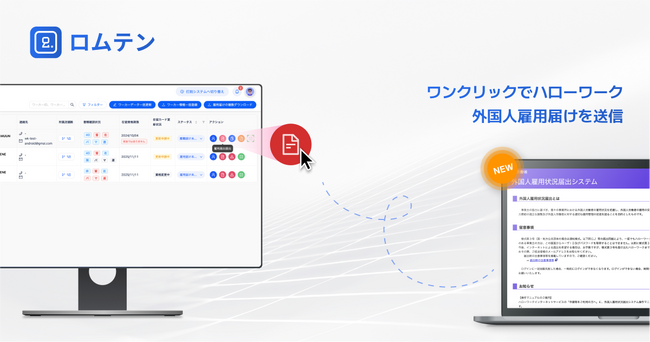 外国人雇用管理サービス「 ロムテン 」に新機能~ 第三弾は 外国人雇用状況届出システムへのオンライン届出提出機能!