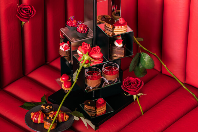 ハートをモチーフにした赤と黒のアフタヌーンティーが登場