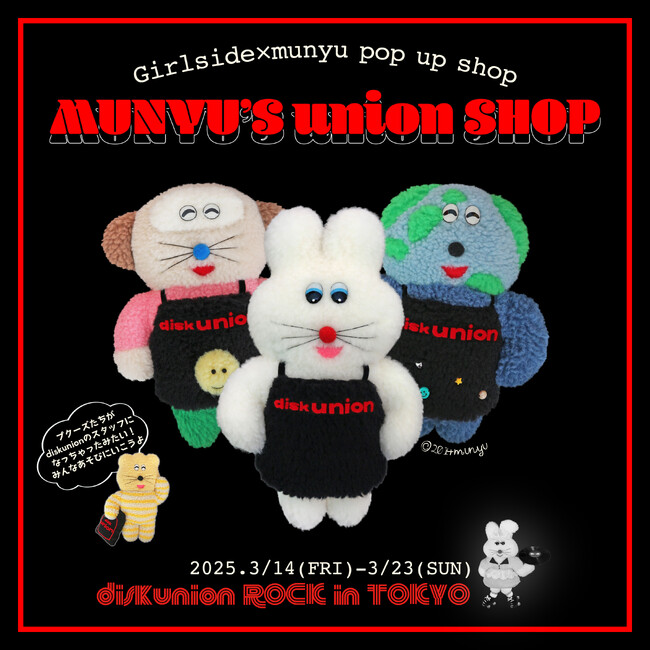 POP UP SHOP 【むにゅ × Girlside × diskunion】 3/14(金)~3/23(日) 渋谷のROCK in TOKYOにて開催!