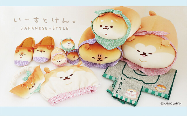 人気キャラクター「いーすとけん。」シリーズから、和のエッセンスを取り入れた新デザインのアイテムが登場します!柴犬とコッペパンが融合した「シバこっぺ」、土佐犬とあんぱんの「とさあんこ」、秋田犬と米粉パンの「あきたこめこ」――3匹の愛らしいキャラクターたちが、唐草模様のバンダナを巻いた愛らしい姿をお楽しみください。
