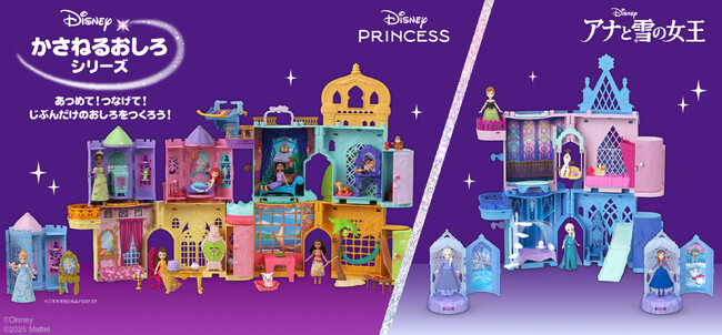 世界大手の玩具メーカー、米国マテル社の日本法人マテル・インターナショナル株式会社(本社:東京都千代田区、代表取締役社長:石井恵三)は、好きなディズニーキャラクターのお城をかさねて遊べる‘かさねるおしろシリーズ’より、「ディズニープリンセス かさねるおしろシリーズ!プリンセスとちいさなおへや」、「アナと雪の女王 かさねるおしろシリーズ!エルサ・アナとちいさなダンスホール」を、4月26日(土)から発売します。また発売に先駆けて、シリーズ初の着せ替えができる「ディズニープリンセス パチッ!とおきがえラプンツェル」、「ディズニープリンセス おへやでビーチ☆マーメイドアリエル」、「ディズニープリンセス アリエル しんじゅがポンッ!きらきらドレッサー」が、3月15日(土)より登場いたします。