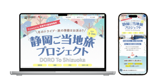 冬の静岡旅に関する最新情報をまとめた特設サイト「Doro To Shizuoka ~静岡ご当地旅プロジェクト~」(https://www.cbr.mlit.go.jp/numazu/doro/)を開設。観光情報だけでなく、道路状況や天候の変化に関する情報も掲載し、安心・安全な旅行をサポートします。