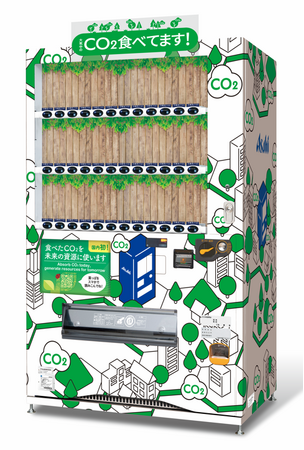 脱炭素社会の実現に貢献する国内初の取り組みであり、外部協力工場の製品製造時に発生する副産物由来の素材を搭載することで大気中のCO2の吸収を可能にした自動販売機は、特許(特許第7282338号)取得済みです。