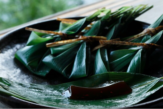 和三盆の優しい甘みと、蓮根のもちもちとした口あたりを爽やかな笹の香とともに楽しめる上品な逸品で、季節の贈答などお贈り物やお取り寄せでも人気。