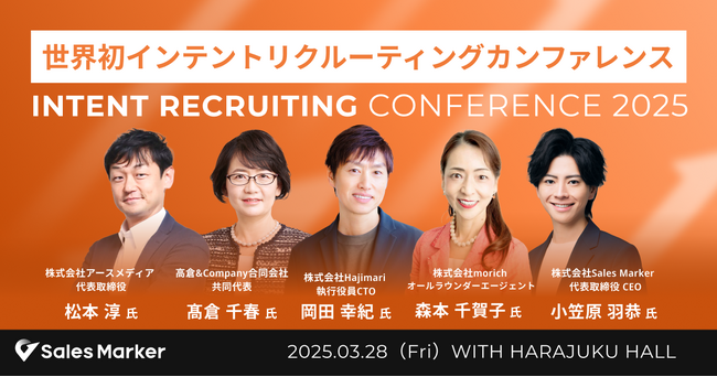 国内初※2インテント(個人の実現したいキャリア)に基づいた採用成功を後押しする、新時代の採用戦略「インテントリクルーティング」を実現する『Recruit Marker(リクルートマーカー)』を開発・提供する株式会社Sales Marker(本社:東京都渋谷区、代表取締役 CEO:小笠原 羽恭)は、2025年3月28日(金)、世界初となる「インテントリクルーティングカンファレンス」を開催いたします。本カンファレンスでは、業界を牽引するリーダーや有識者とともにインテントリクルーティングの可能性を探りながら、候補者起点での採用活動をいかに実現していくかについて議論を深めます。