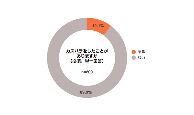 「カスハラをしたことがあるか」と尋ねたところ「ある」が10.1%、「ない」が89.9%という結果になりました。
