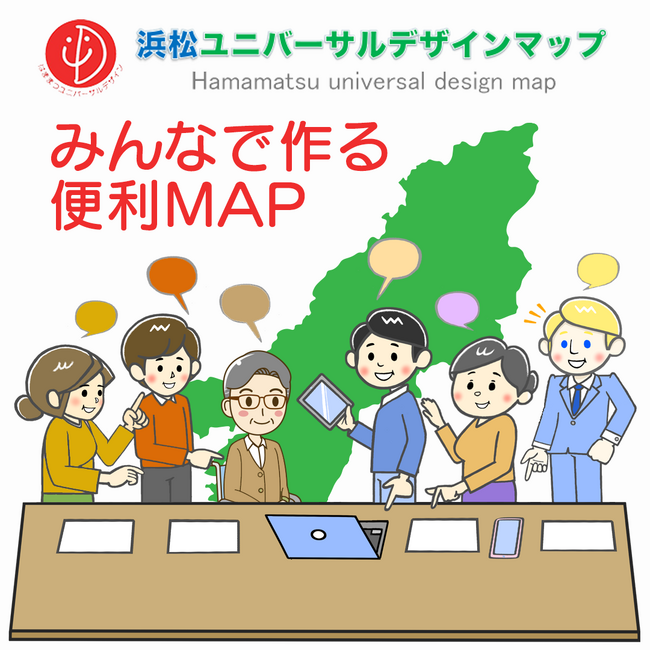 浜松ユニバーサルデザインマップ浜松ユニバーサルデザインマップは、おもいやり駐車場、授乳室、着替えスペース、外国語対応など誰もが使いやすい工夫や設備を提供しているお店や市の施設を、皆様の情報提供をもとにみんなで作っていく、取り組みです。