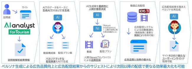 - 観光関連サイトのデータを基に、AIが潜在顧客の嗜好を抽出。NewsTVの知見を活かし、視聴者に響く動画広告コンテンツを提案・制作。