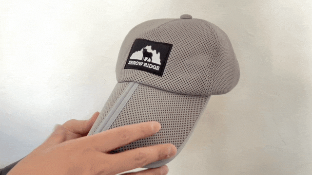 汗をかいて湿った帽子は振るだけで、ある程度の水分を飛ばすことができます。水分が減ると通気性の高いメッシュ生地の効果で帽子を被った時に涼しく感じるのも特徴です。