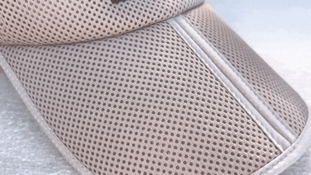 「この不快感を何とかしたい!」そこで、通気性が良く、大量の汗を吸収できる帽子を作りたいと考え、3年の歳月を経て、通気性の良いメッシュ素材を開発することができました。