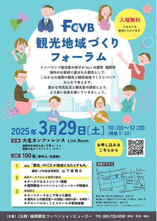 公益財団法人福岡観光コンベンションビューローは、2025年3月29日(土)に「観光地域づくりフォーラム2025」を開催いたします。