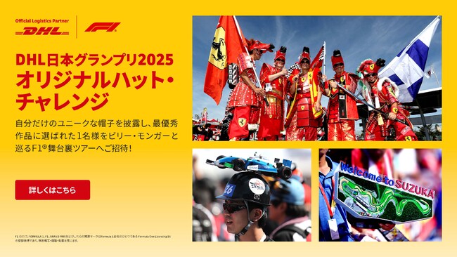 国際エクスプレスとロジスティクスのグローバルリーダーであるDHLは、2025年4月5日(土)~6日(日)に三重県鈴鹿サーキットで開催されるフォーミュラ1(R)(F1)日本グランプリにおいて、特別企画「DHL オリジナルハット・チャレンジ」を開催します。F1を20年間ロジスティクス面で支えてきたDHLが、日本のF1ファンの皆さんに、心に残る忘れられない瞬間をお届けします!コンテストへの参加方法は、DHL.InMotion.でご覧いただけます。