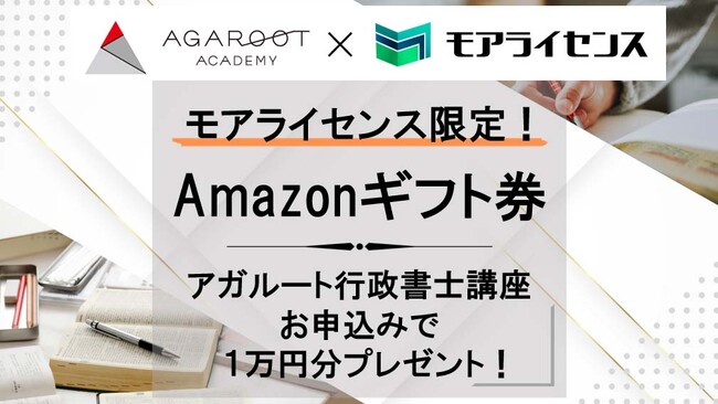 『モアライセンス』がアガルート行政書士講座とのタイアップキャンペーン実施中!対象講座をお申し込みの方全員にAmazonギフト券1万円分プレゼント!
