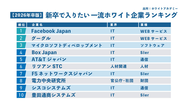[2026年度版]新卒で入りたい一流ホワイト企業ランキング 11~20位
