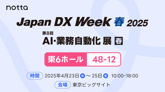 Notta、Japan DX Week 春2025「第8回 AI・業務自動化展」に出展決定(4/23~4/25・東京ビッグサイト)