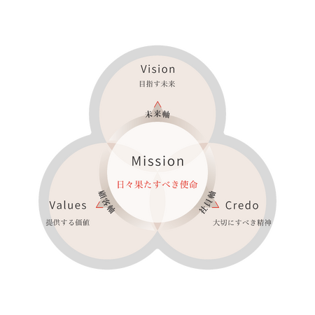 新たな企業理念体系である『KAWAI Philosophy』はKAWAIの価値観や存在意義、目指す方向性を体系的に表したものであり、「Mission(日々果たすべき使命)」、「Vision(目指す未来)」の他、世の中に提供する価値として「Values(提供する価値)」、社員一人ひとりが大切にする行動指針として「Credo(大切にすべき精神)」の4つで構成されています。
