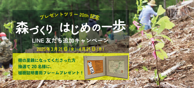 森林再生プロジェクト「Present Tree(プレゼントツリー)」20周年記念第一弾・LINE友だち追加キャンペーン