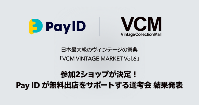 BASE株式会社(所在地:東京都港区、代表取締役CEO:鶴岡 裕太、以下BASE)が運営する購入者向けショッピングサービス「Pay ID(ペイ アイディー)」は、株式会社VCM(所在地:東京都渋谷区、代表取締役CEO:十倍 直昭)が主催し「Pay ID」がグランドスポンサーを務める「VCM VINTAGE MARKET vol.6」において、最大2ショップにブースを無料提供する選考会「Road to VCM Presented by Pay ID」を実施しました。