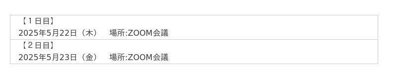 ■開催日程 (御受講の方は1日目と2日目両方をご予約下さい。)