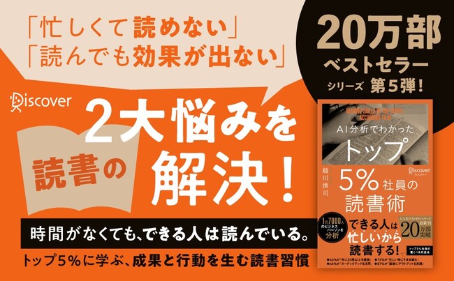 株式会社ディスカヴァー・トゥエンティワン(本社:東京都千代田区、代表取締役兼社長執行役員:谷口奈緒美)は2025年3月22日に『AI分析でわかったトップ5%社員の読書術』(越川慎司著)を刊行しました。