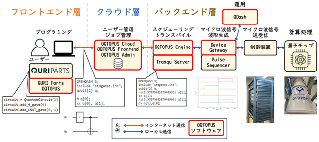 <図1「OQTOPUS」を利用した量子コンピュータ・クラウドサービスの全体像>