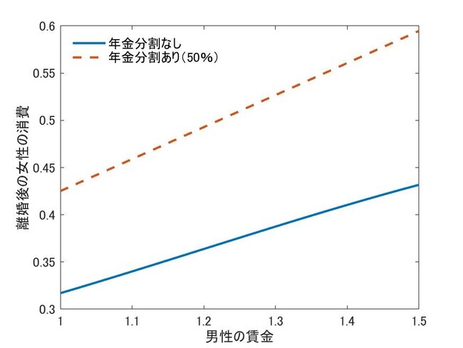その結果、年金分割制度は1.離婚率を上昇させる2.離婚後の女性の消費量は増加している3.男性の消費量は低下する、ことなどがわかったとしています。
