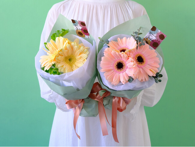 オンラインショップでも「ガーベラ記念日」のある4月限定で、春らしい柔らかな色合いのガーベラを束ねたブーケが登場します。
