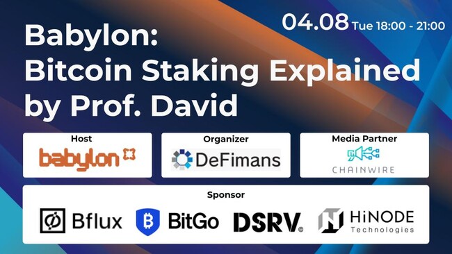 DeFimans、ビットコインステーキングプロトコルを開発したBabylon Labsと「Bitcoin Staking Explained by Prof. David」イベントを4月8日に開催!