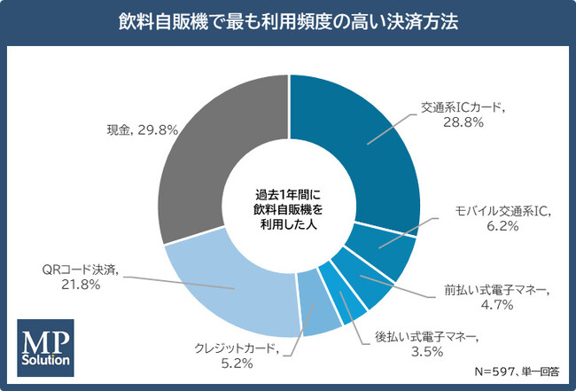 キャッシュレス決済導入・決済運用をワンストップで支援する株式会社エム・ピー・ソリューション(本社:東京都港区、代表取締役社長:佐藤栄治)は、飲料自販機を過去1年以内に利用したことがある東京都在住の15歳~69歳男女597名を対象に、「飲料自販機における決済利用状況」に関するアンケート調査を実施しました。