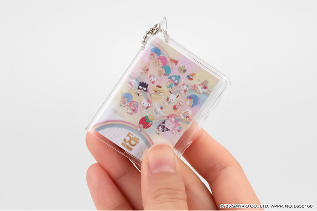 本商品は、今年創刊50周年の機関紙「月刊 いちご新聞」の歴代の表紙をデザインした全高約58mmの豆ノートです。レトロなデザインのハローキティが表紙の「NO.32」、いちごの王さまメインデザインの「NO.34」など、様々な世代に思い入れのある表紙デザインをラインアップし、50年の歴史を感じられます。中のノートはいちご柄のデザインで、実際に書くこともできます。透明カバーとボールチェーン付きなのでチャームとして身につけてもかわいいアイテムです。